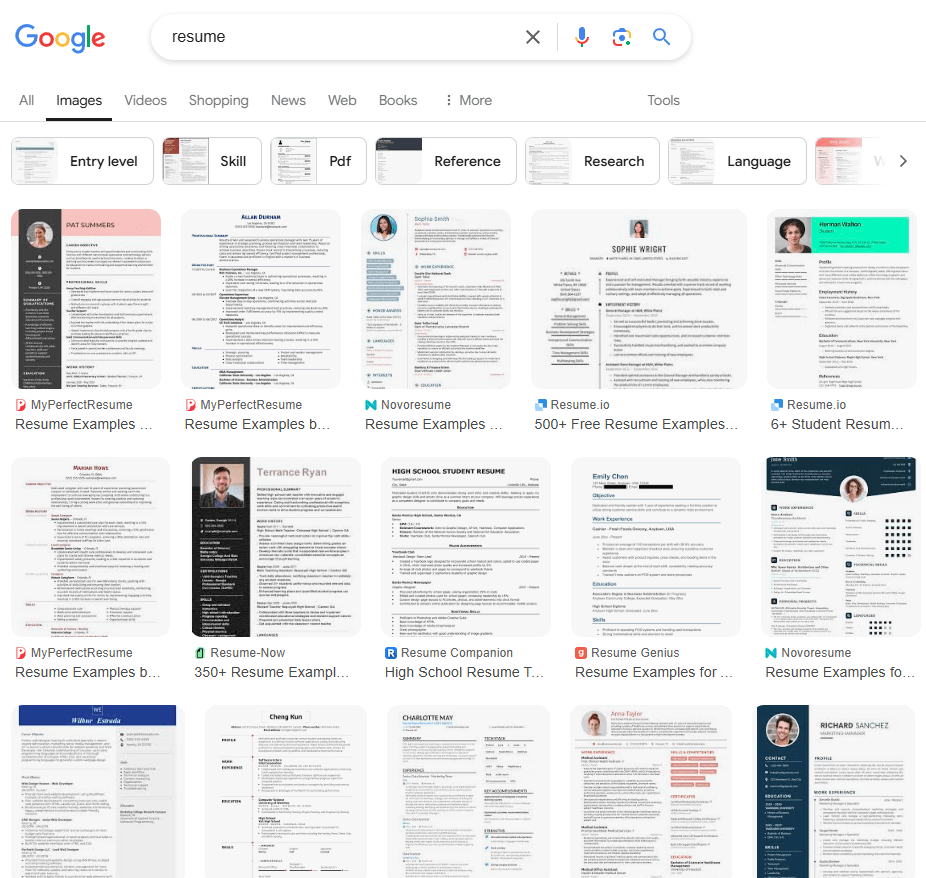 Go to Google and do a search for ‘resume’ (or ‘CV’).